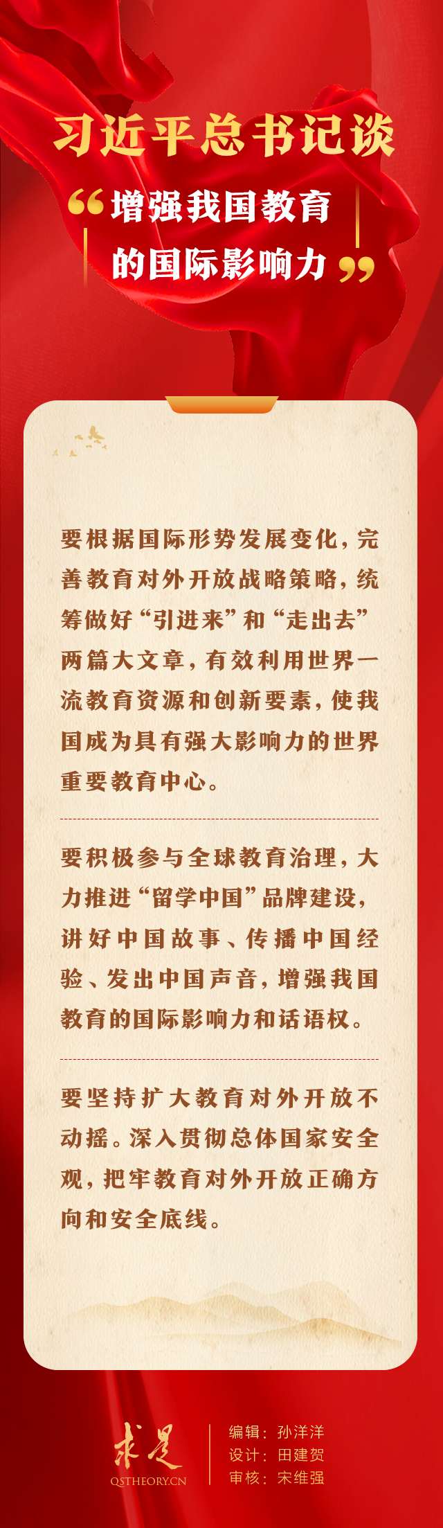 9月16日出版的第18期《求是》杂志刊发习近平总书记重要文章《扎实推动教育强国建设》。在这篇重要文章中,总书记从“培养担当民族复兴大任的时代新人”、“加快建设高质量教育体系”、“全面提升教育服务高质量发展的能力”、“在深化改革创新中激发教育发展活力”、“增强我国教育的国际影响力”、“培养高素质教师队伍”6个方面,对扎实推动教育强国建设提出明确要求。