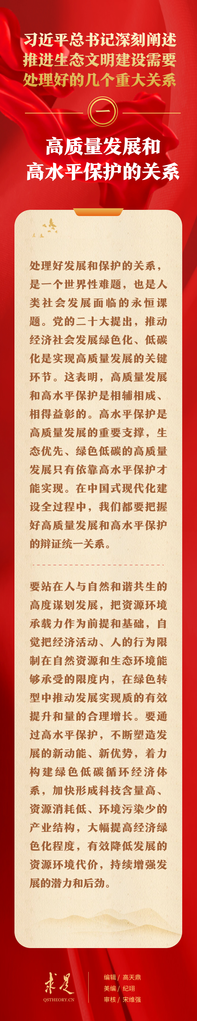 11月16日出版的第22期《求是》杂志刊发习近平总书记重要文章《推进生态文明建设需要处理好几个重大关系》。在这篇重要文章中,总书记从“高质量发展和高水平保护的关系”、“重点攻坚和协同治理的关系”、“自然恢复和人工修复的关系”、“外部约束和内生动力的关系”、“‘双碳’承诺和自主行动的关系” 5个方面,深刻阐明推进生态文明建设需要处理好的几个重大关系,提出明确要求。