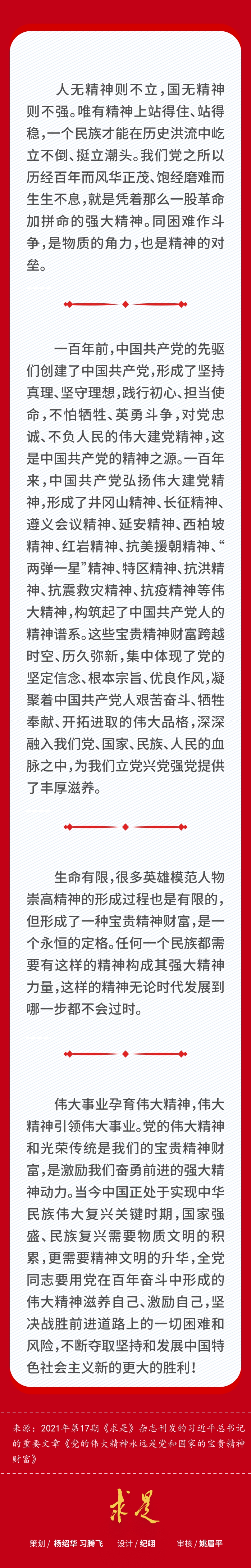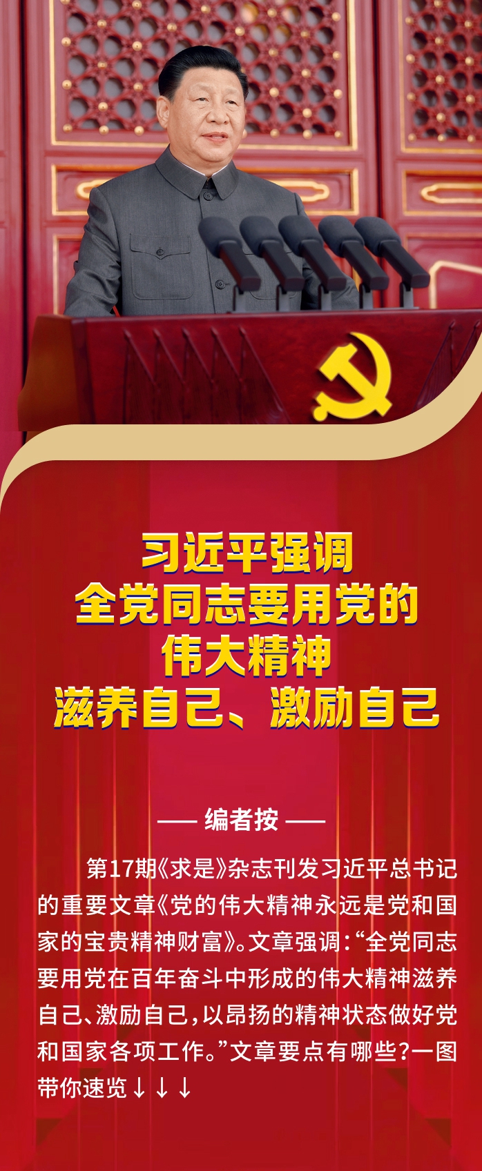 习近平强调,全党同志要用党的伟大精神滋养自己、激励自己