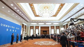 3月4日下午,全国政协十四届一次会议首场“委员通道”集体采访活动在人民大会堂举行。