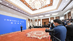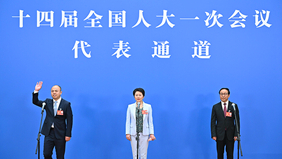 3月5日上午,十四届全国人大一次会议首场“代表通道”集体采访活动在人民大会堂举行。