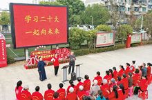 “党的光辉照社区,二十大精神鼓人心。社区党委一班人,率领居民踏征程……”在江西省南昌市东湖区彭家桥街道光明社区党群服务中心,72岁的退役军人孙启明正与社区干部一起用快板说唱宣讲党的二十大精神。