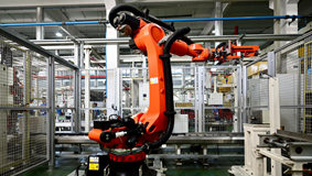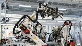 走进工厂,一幅充满未来科技感的汽车制造场景映入眼帘——冲压、焊装、涂装、总装、电池电驱车间星罗棋布,工业机器人手臂升降旋转,自动导航运输车往来穿梭,智能控制屏幕上数字闪烁,在自动化机械与专业人工的配合下,每54秒,就有一辆新能源汽车顺利下线。