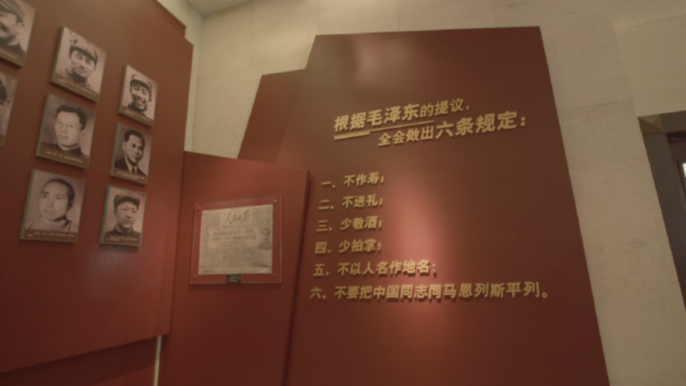 那么在这次会议中,毛主席还提出了我们必须防止“四种情绪”,分别指的是:骄傲的情绪,以功臣自居的情绪,停顿起来不求进步的情绪,贪图享乐、不愿再过艰苦生活的情绪。会议最后一天,毛主席还向全党提出了“六条规定”,也就是马上进京了,防止一些领导干部进京以后可能会出现一些现象,比如歌功颂德、居功自傲。所以主席提出:一不做寿、二不送礼、三少敬酒、四少拍掌、五不以人名作地名、六不要把中国同志与马恩列斯平列。所以说现在我们反过头来再来看,“两个务必”“四种情绪”和“六条规定”在新时代,可以说也是非常具有现实的意义的。
