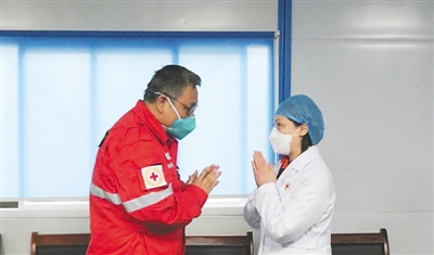 “这是两位战士的相互祝愿。”李庆云说,“特殊时期不能握手,我们这个战友过来给我深深地鞠了一躬,我也给她回礼。祝福她重返工作岗位,也增强了我们一起并肩继续战斗的信心。”