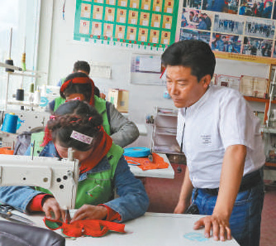 “走上创业路,经验和想法越来越多,我要帮助更多同胞脱贫。”2008年,旦增欧珠组织村里7名残疾人学习缝纫技术,制作销售旅游纪念品。