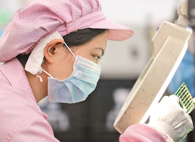 3月31日,在中国信科集团烽火通信公司系统设备制造部的5G智造车间,工人正在生产相关设备。人民日报记者 李舸摄