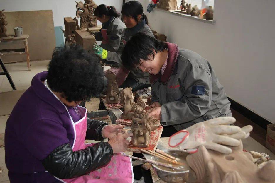 “我以为自己今年找不到啥活了,心情也不好。前几天老卜让我赶紧来上班,心情一下好起来了。这里上班离家不到500米,每天还有100元的收入,对于我来讲,真的很知足了。”同村今年58岁的建档立卡贫户董淑珍在接到老卜上班的电话后,第一个来到车间,重新操起手中的凿子和刻刀,勾勒着属于自己的美好生活画面。