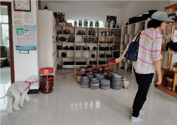从四川攀枝花到花茂村避暑的游客,正在参观陶艺馆,准备购买一只炖锅。见习记者张艺摄