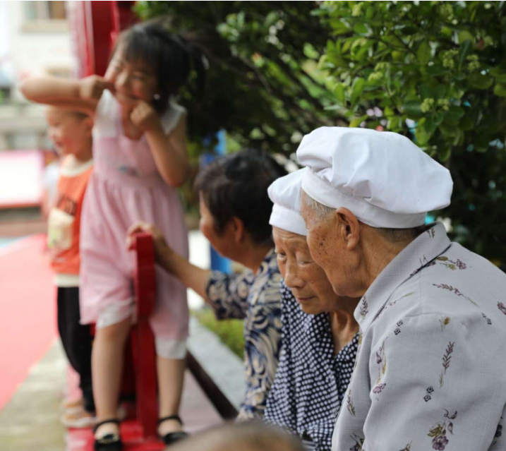 花茂村老人在党群之家门口的广场上聊天。见习记者张诗童摄
