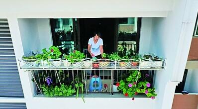 8月27日,在李家溪易地扶贫搬迁安置点,一位居民在打理家里阳台上的花草。新华社发(杨敏摄)