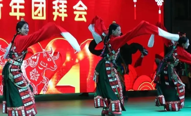 团拜会上,举行了丰富多彩的文艺演出,为元旦佳节增添了欢乐祥和的美好氛围。文艺演出在喜庆热闹开场舞《伊舞风采》中拉开帷幕。整台晚会形式多样,独唱《再唱山歌给党听》《澜沧江我的母亲河》,电子琴笛子合奏《美丽的草原我的家》,合唱《故乡格吉》,山歌演唱《格吉萨松扎》等20个节目表演将晚会推向了高潮。整场文艺演出体现了中华民族优秀传统文化在杂多大地的传承、弘扬与发展,彰显了我们的文化自信,表达了杂多人民意气风发、沿着新时代中国特色社会主义道路奋勇前行、努力实现“五个杂多”愿景的壮志豪情。