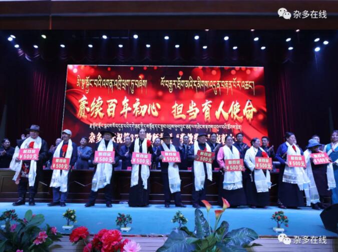 久文宣读了《关于表彰杂多县2021年度教育教学先进单位和个人的决定》,会议共表彰了16个先进学校、33个优秀班级、495名优秀教师和91名优秀学生,投入表彰资金243万元。坐在主席台的县级领导为获奖单位和个人颁奖。