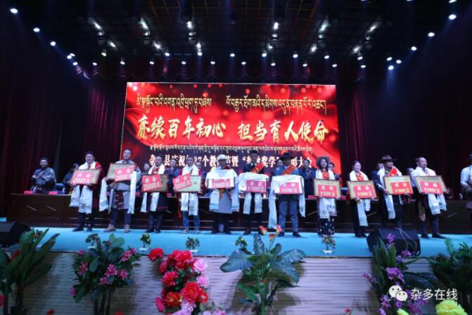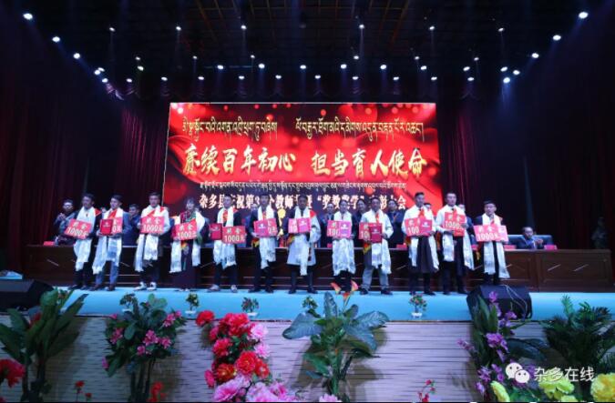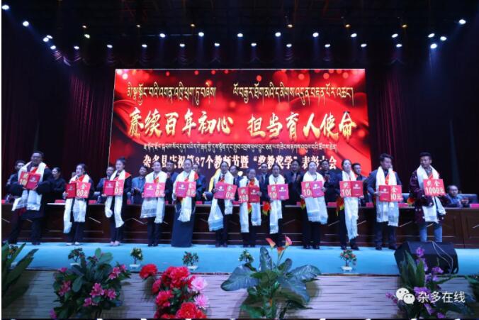 9月9日上午,在杂多县第二民族中学风雨操场举行了庆祝第37个教师节暨奖教奖学表彰大会,集中表彰教育战线先进典型,弘扬尊师重教良好风尚,汇聚教育发展磅礴力量,为“五个杂多”建设再谱新篇章。县委书记刘中,县委副书记、县政府县长久文,县政府副县长扎西旦周等在家县级领导出席会议。各县直部门、各垂直单位、各乡镇、各村两委会和各社区负责人,各中小学、幼儿园全体教职工,退休教师和家长代表参加会议。县委副书记、教工委书记贺生元主持会议。