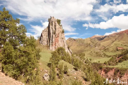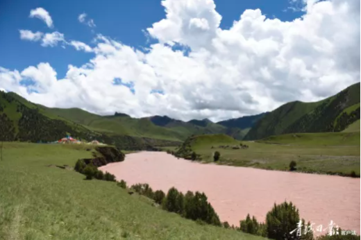 从玉树州杂多县出发,沿澜沧江顺流而下,穿过昂赛乡政府所在地,向巴艾涌丹霞地质景区方向挺进。蓝天白云,雪山峡谷,蓊郁的崖柏,油绿的高山草场,赤色夺目的丹霞地貌,还有蜿蜒清澈的河水……一帧帧美景从眼前划过,仿佛置身于一幅山水画中。