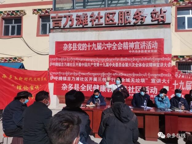 党的十九届六中全会胜利召开以来,杂多县通过“线上+线下”双线同步学习法,以文化科技卫生“三下乡”活动、“文艺+宣讲”“志愿+宣讲”“健康教育+宣讲”“17支理论宣讲队、全民健康教育宣讲队、新时代文明实践11支志愿服务分队”形成的“3+3”宣讲模式,掀起学习贯彻党的十九届六中全会精神宣讲热潮。