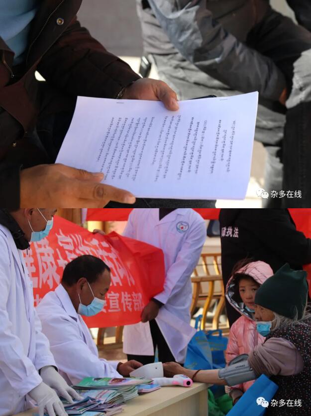 连日来,杂多县严格按照疫情防控要求,以“三下乡”活动为载体,开启“3+3”宣讲模式,努力做好十九届六中全会精神宣讲“+”文章。“文艺+宣讲”,理论“声”入人心。“一颗心儿向着您,草原儿女心中的传奇....”这首获选中国音乐家协会主办的庆祝中国共产党成立100周年“百年百首”全国优秀新创歌曲征集活动的杂多县原创歌曲在杂多县吉乃滩社区响起。这里正在进行一场别开生面的十九届六中全会精神“文艺+宣讲”活动。杂多县用群众喜闻乐见的形式,运用鲜活生动、接地气的节目将文艺和宣讲有机融合,让群众既在欢声笑语中观看了文艺演出,又学习了全会精神。志愿+宣讲,文明“践”于行动。按照新时代文明实践中心统一安排,杂多县依托“1+3+4”志愿服务体系,充分发挥新时代文明实践中心(所、站)和11支新时代文明实践专业志愿服务分队作用,把学习宣传贯彻党的十九届六中全会精神以及法制宣讲、科普等纳入新时代文明实践,组织志愿者深入乡镇社区,以不漏一村、不漏一户为目的,走村入户开展宣讲活动。健康教育+宣讲,精神“融”入实处。运用杂多县17支理论宣讲队、全民健康教育宣讲队,结合“三下乡”中的卫生下乡,切实把学习宣传党的十九届六中全会精神同开展全民健康教育结合,通过义诊为群众健康谋福,通过宣讲为群众普及健康知识,把践行“健康理念”融入到全会精神宣讲中,使全民健康教育工作落到实处。
