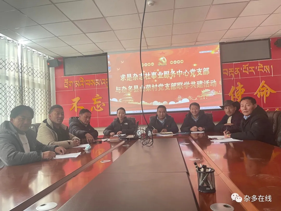 12月16日,为进一步提升支部组织力,发挥基层党组织在乡村振兴中的引领作用,创新巩固脱贫攻坚帮扶思路,求是杂志社事业服务中心党支部与杂多县山荣村党支部举办了联学共建活动,共同学习习近平总书记重要文章,讨论山荣村下一步乡村振兴措施,谋划明年工作。