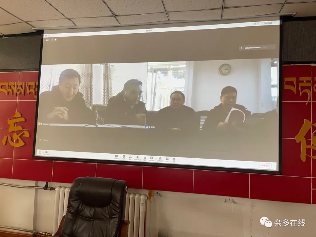 受疫情影响,活动通过视频连线的方式开展,求是杂志社帮扶办和事业服务中心部分党员、曾在山荣村挂职的同志,杂多县山荣村部分党员、致富带头人、驻村干部参加。求是杂志社帮扶办主任严海波,苏鲁乡党委副书记布尼玛分别领学,求是杂志社派驻山荣村第一书记黄相柏主持。
