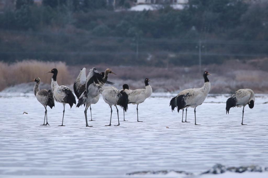 黑颈鹤在贵州草海国家级自然保护区内翩然飞舞。(受访者供图)
