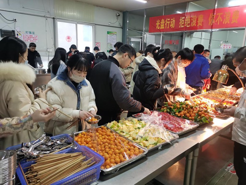 香辣小龙虾、红烧排骨、黑椒牛仔骨、清蒸鱼……除夕夜,几百名一线工人齐聚阳光中科(福建)能源股份有限公司位于福建南安的工厂,共享30多道餐品的自助年夜饭,还领到了每人3500元的“坚守岗位”红包。