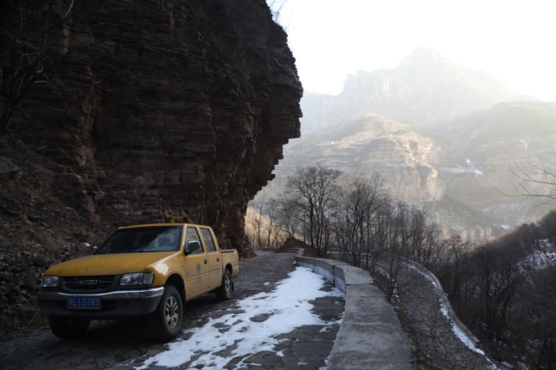 山里大多地方雪还未化,道路崎岖湿滑,“黄皮卡”一路缓慢行驶。老程告诉记者,这样的路他每天至少走一趟,一趟超过200公里。如果遇到需要抢修的情况,往返两三趟也是常有的事儿。