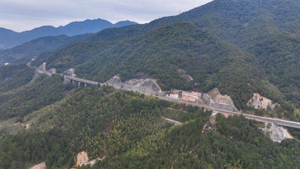 这是位于大山里的苎园站(无人机照片)。新华社记者周义 摄