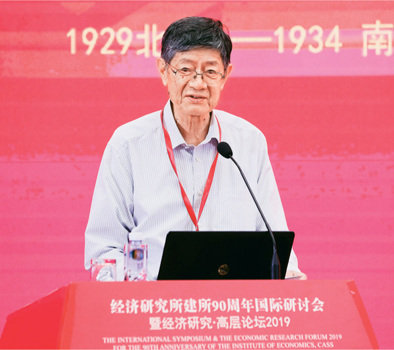 图为2019年5月17日,张卓元在中国社会科学院“经济研究所建所90周年国际研讨会暨经济研究·高层论坛2019”上致辞。 新华社发 中国社会科学院经济研究所供图