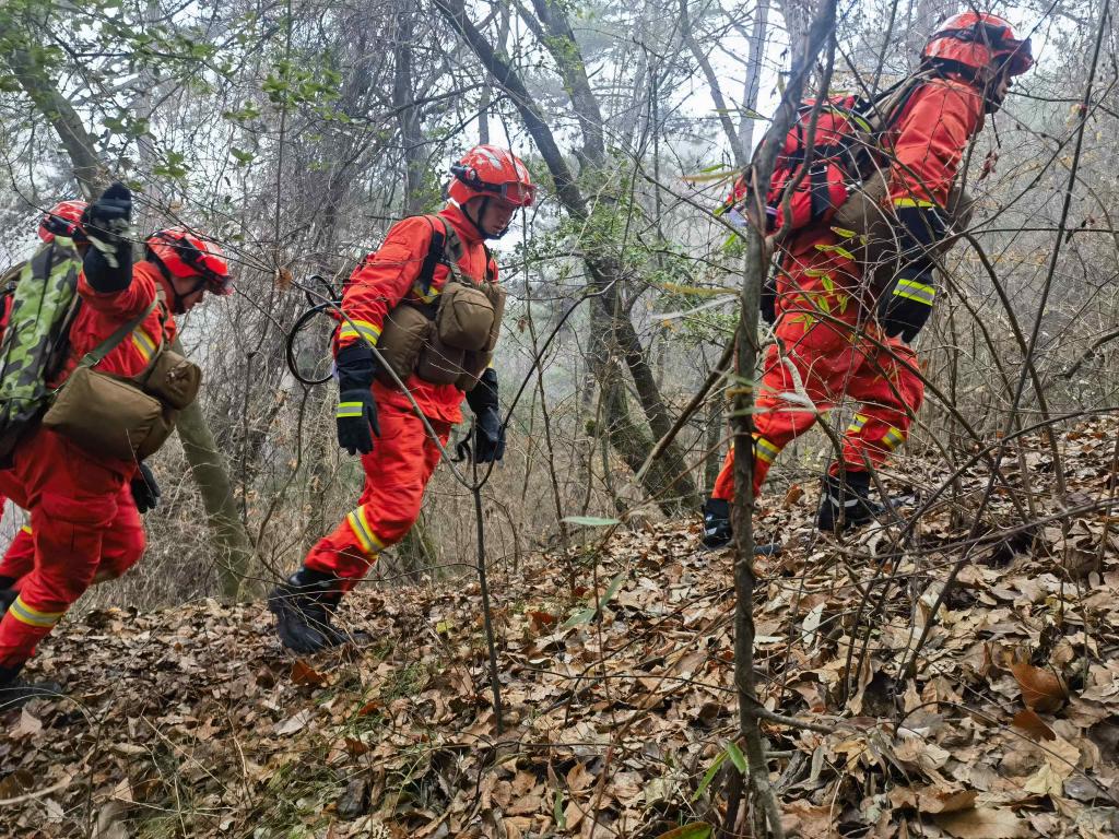 甘肃省森林消防总队队员正在麦积山开展春节前巡护工作。新华社记者 胡伟杰 摄