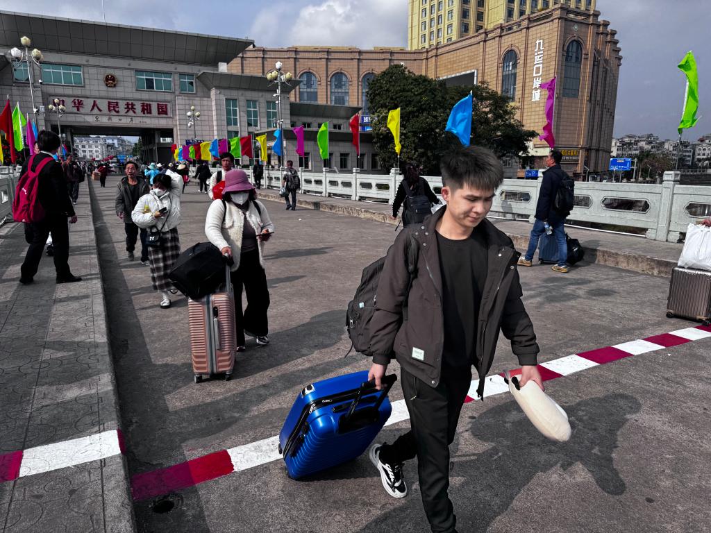 中越友谊大桥上,跨境旅客往来穿梭。新华社记者 黄凯莹 摄