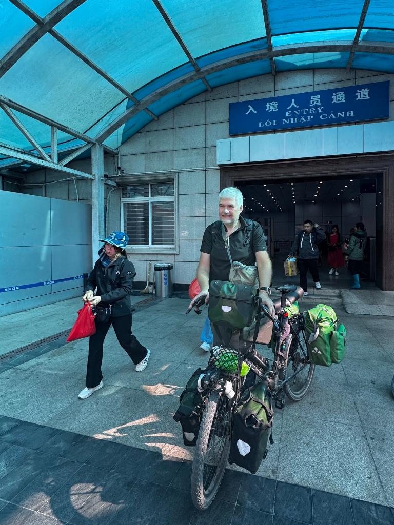 当德国游客伯纳德推着自行车,跨越红白相间的中越友谊大桥中线,走进广西东兴口岸入境通道时,他向海关卫生检疫工作台上的工作人员竖起了大拇指。