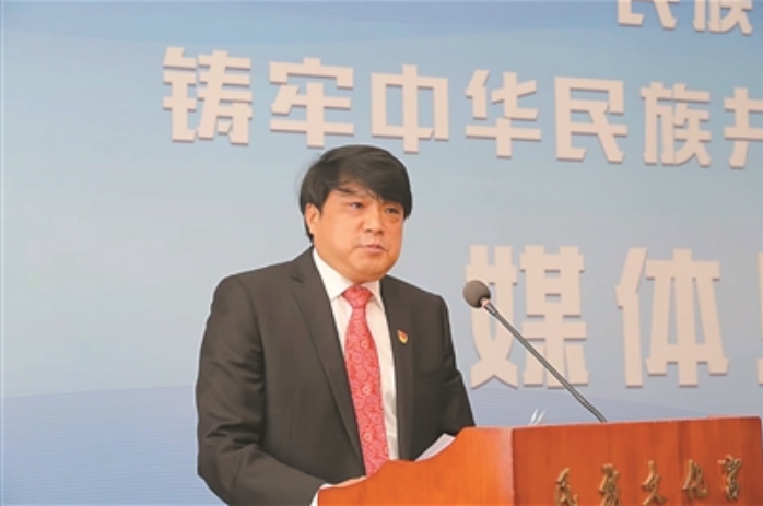 们发延在“民族文化宫铸牢中华民族共同体意识系列展览媒体见面会”上介绍展览情况和答记者问
