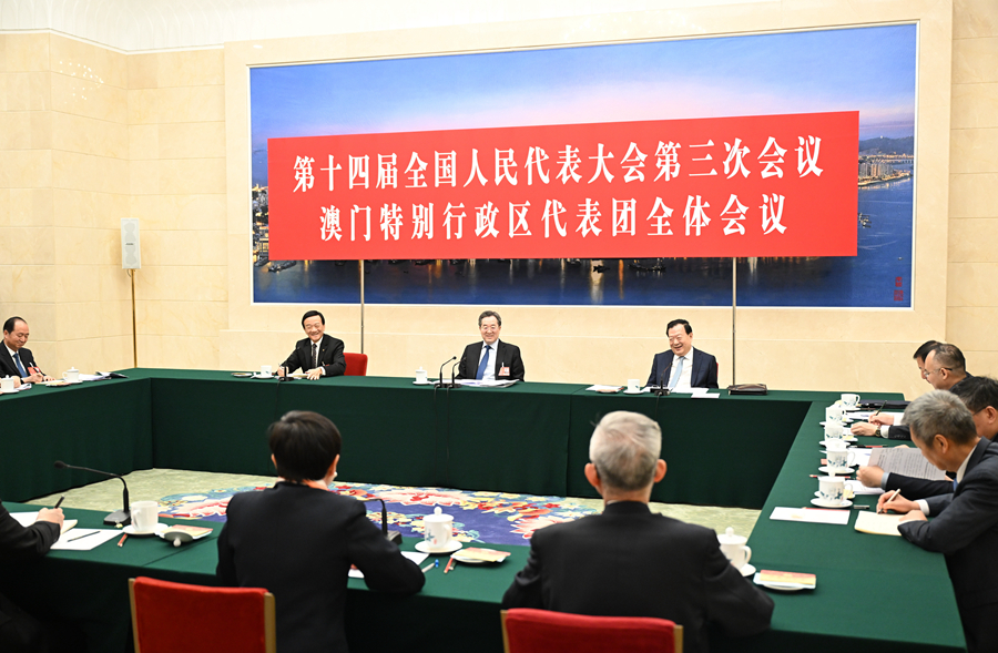 丁薛祥7日上午分别参加香港代表团、澳门代表团审议。在认真听取香港、澳门全国人大代表发言后,丁薛祥表示,过去一年,在以习近平同志为核心的党中央坚强领导下,经过全国各族人民共同努力,中国式现代化迈出新的坚实步伐,“一国两制”事业取得新的突破性成就。习近平总书记出席庆祝澳门回归祖国25周年系列活动并视察特区,为港澳未来发展领航指向,影响重大而深远。我们要深入学习贯彻习近平总书记重要讲话精神,担当起新时代“一国两制”实践的重要使命,实现香港、澳门更好发展,为强国建设、民族复兴作出更大贡献。在香港代表团,丁薛祥指出,香港正在加快推进由治及兴,要更加坚定维护国家安全,集中精力拼经济、谋发展、搞建设,巩固国际金融、航运、贸易中心地位,维护自由开放规范的营商环境,加快培育具有国际竞争力的新产业、新赛道。在澳门代表团,丁薛祥指出,今年是新一届澳门特区政府开局起步的关键一年,要进一步完善维护国家安全的制度机制,推动澳门经济适度多元发展,做好“澳门+横琴”这篇大文章,广泛拓展国际联系,打造更高水平对外开放平台。丁薛祥充分肯定香港、澳门全国人大代表工作,希望大家继续履职担当、务实进取,全力支持行政长官和特区政府依法施政,推动社会各界广泛凝聚共识,共同开创港澳繁荣发展新局面。