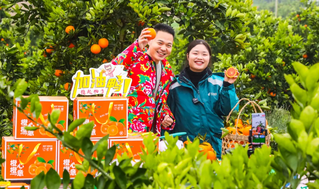图为2024年1月19日,重庆市垫江县五洞镇龙滩村柑橘基地,直播团队在进行直播带货。人民图片 龚长浩/摄