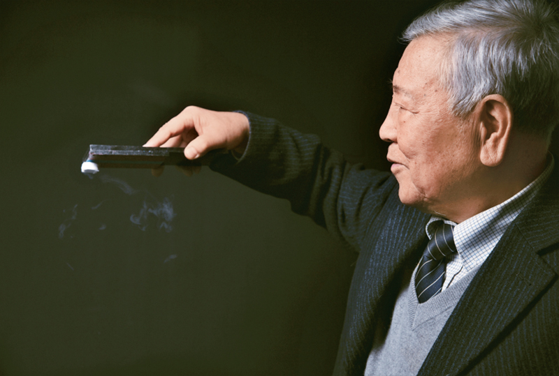 图为赵忠贤在中国科学院物理研究所演示磁悬浮现象(2017年1月8日摄)。 新华社记者 金立旺/摄