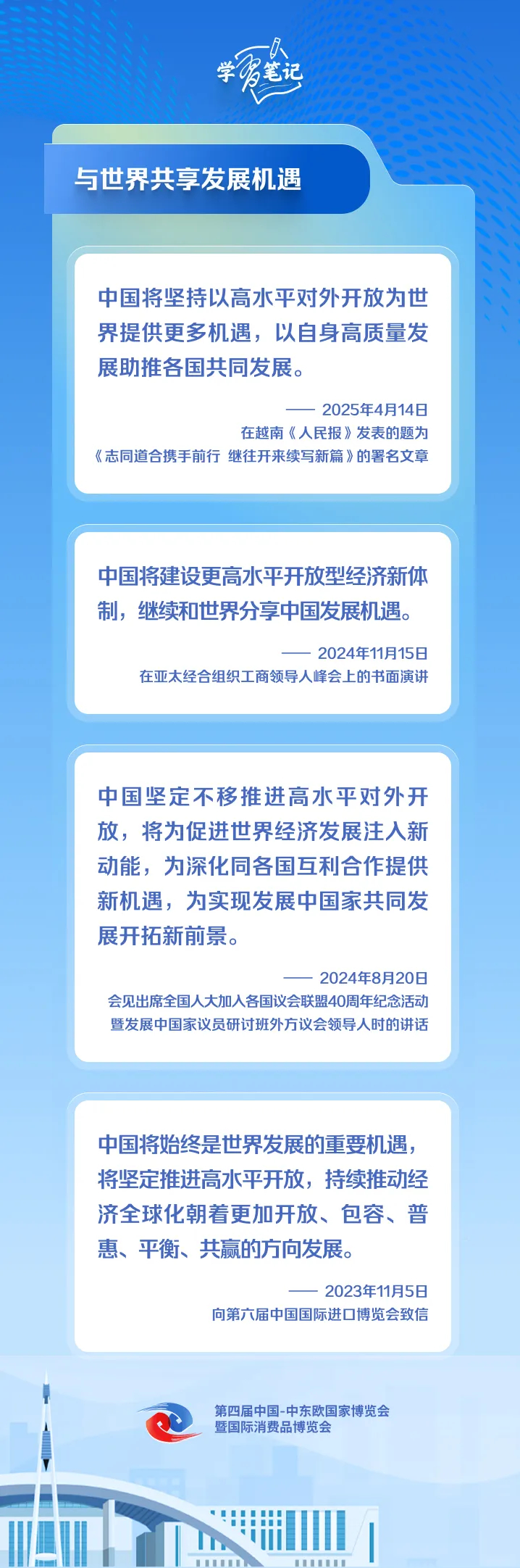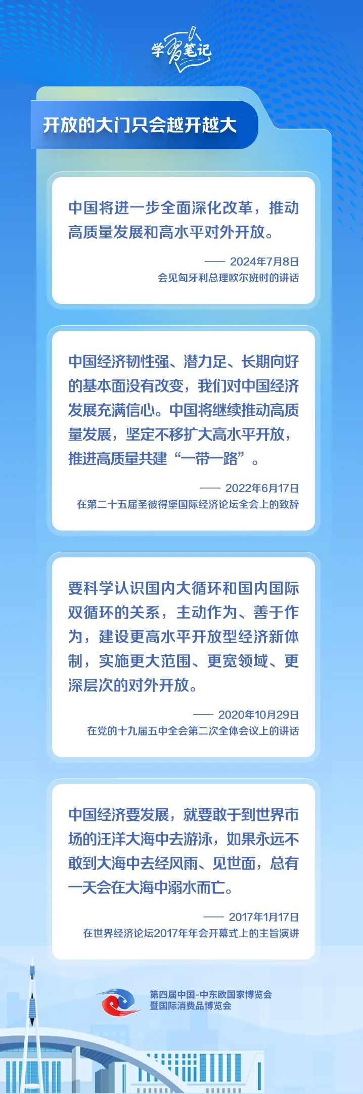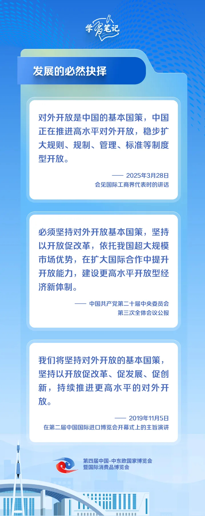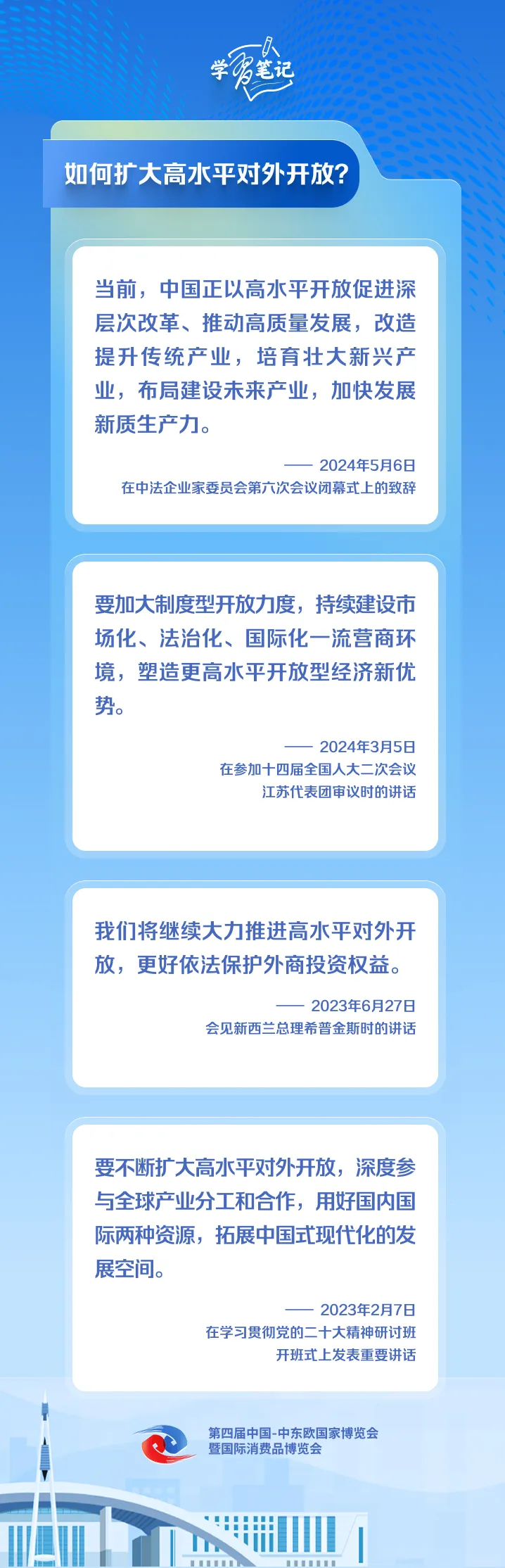 5月22日至25日,第四届中国—中东欧国家博览会暨国际消费品博览会在宁波举办,这是新时代我国扩大高水平对外开放的重要窗口。习近平总书记多次围绕推动高水平对外开放作出重要阐释,指引中国与世界各国共享发展机遇、共创美好未来。一起来看!