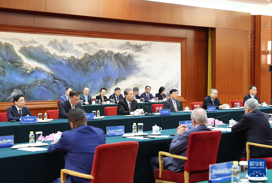 9月10日下午,全国人大常委会委员长赵乐际在北京集体会见出席2025年国际议员友好交流论坛的各国议员。新华社记者 姚大伟 摄