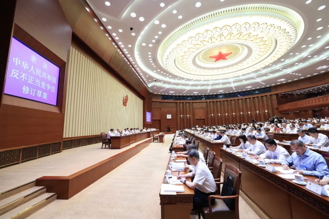 强化反垄断与反不正当竞争、深入推进公平竞争政策实施,是完善社会主义市场经济体制的内在要求。2025年6月27日,十四届全国人大常委会第十六次会议表决通过新修订的《中华人民共和国反不正当竞争法》,自2025年10月15日起施行。图为当日表决现场。 中新社记者 田雨昊/摄