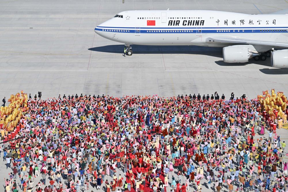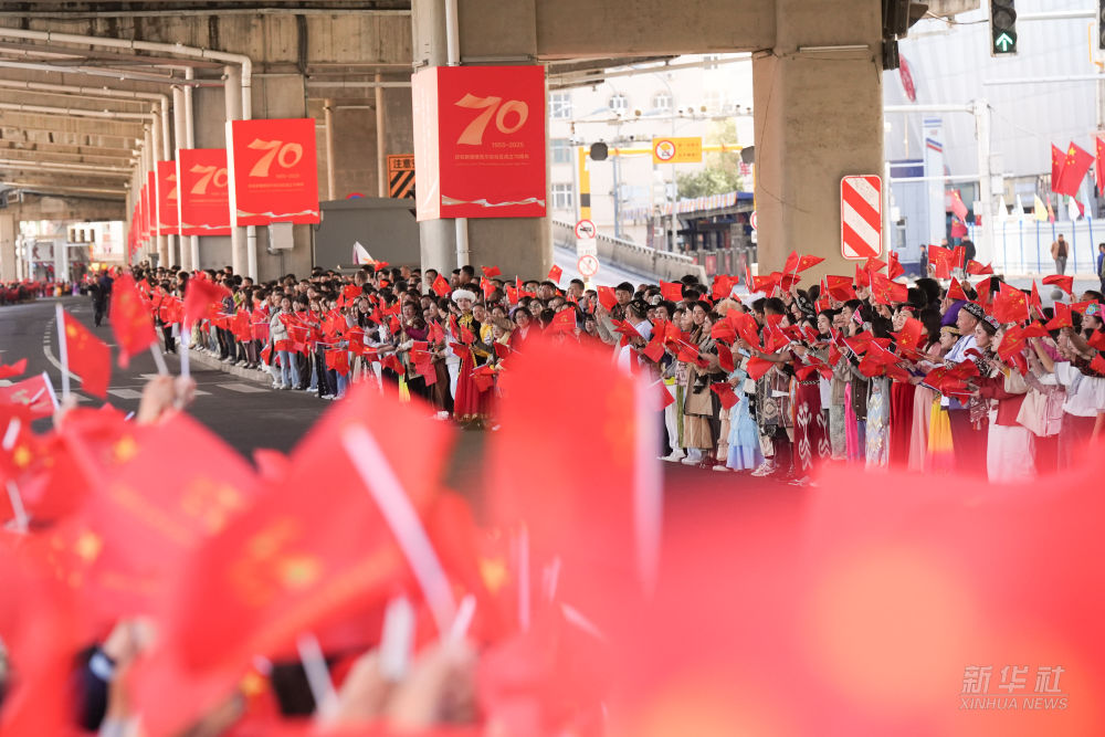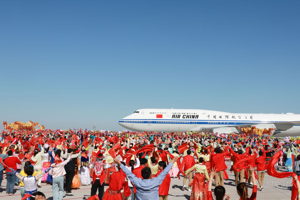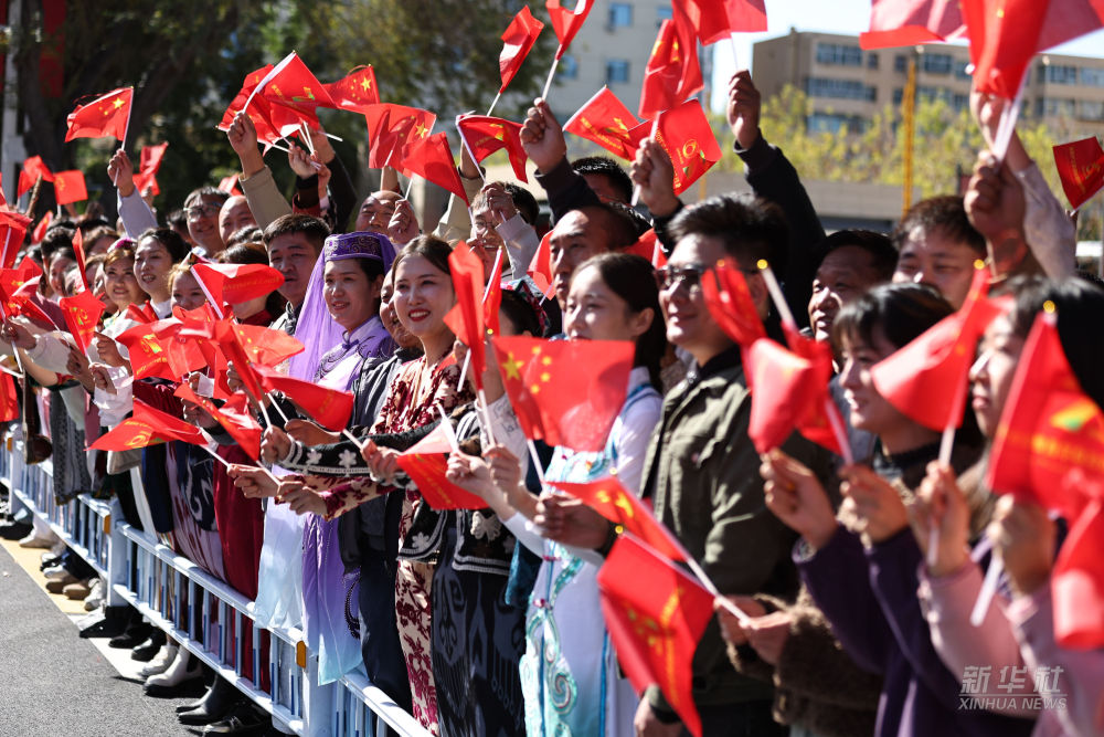 25日中午,习近平总书记在乌鲁木齐出席新疆维吾尔自治区成立70周年庆祝活动后,乘专机返回北京。在乌鲁木齐市区和机场,新疆各族群众热情欢送总书记。