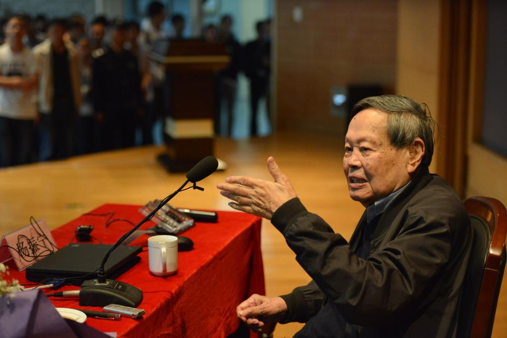 2014年4月14日,杨振宁在浙江大学演讲。新华社发(龙巍 摄)