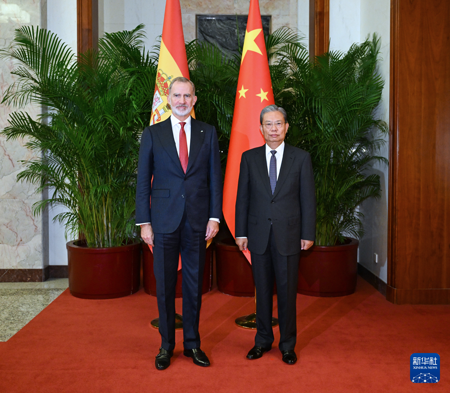 11月12日下午,全国人大常委会委员长赵乐际在北京会见西班牙国王费利佩六世。新华社记者 饶爱民 摄