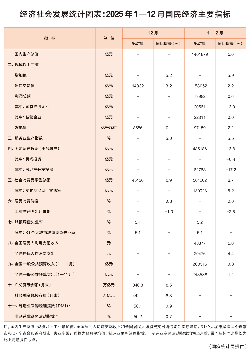 经济社会发展统计图表:2025年1—12月国民经济主要指标