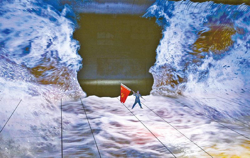近年来,AI虚拟交互、全息影像、三维声场等前沿技术赋能文化传播,改变了文化体验的单向性,构建起可参与、可感知、可回味的文化场域。在贵州长征文化数字艺术馆,全域行浸数字演艺《红飘带·伟大远征》集合最新科技手段,数字化全景再现长征之路。图为2025年11月15日,演员在进行《红飘带·伟大远征》表演。 新华社记者 杨文斌/摄