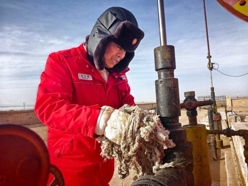 挂了电话,史玉明加快脚步走到井边,缓缓蹲下身,指尖轻轻抚过冰冷的管线,目光专注地仔细检查每一处接口,不放过任何一个细微的隐患。寒风依旧猛烈,吹得他头发凌乱,可他的目光始终坚定,仿佛要刻进每一口油井的深处。