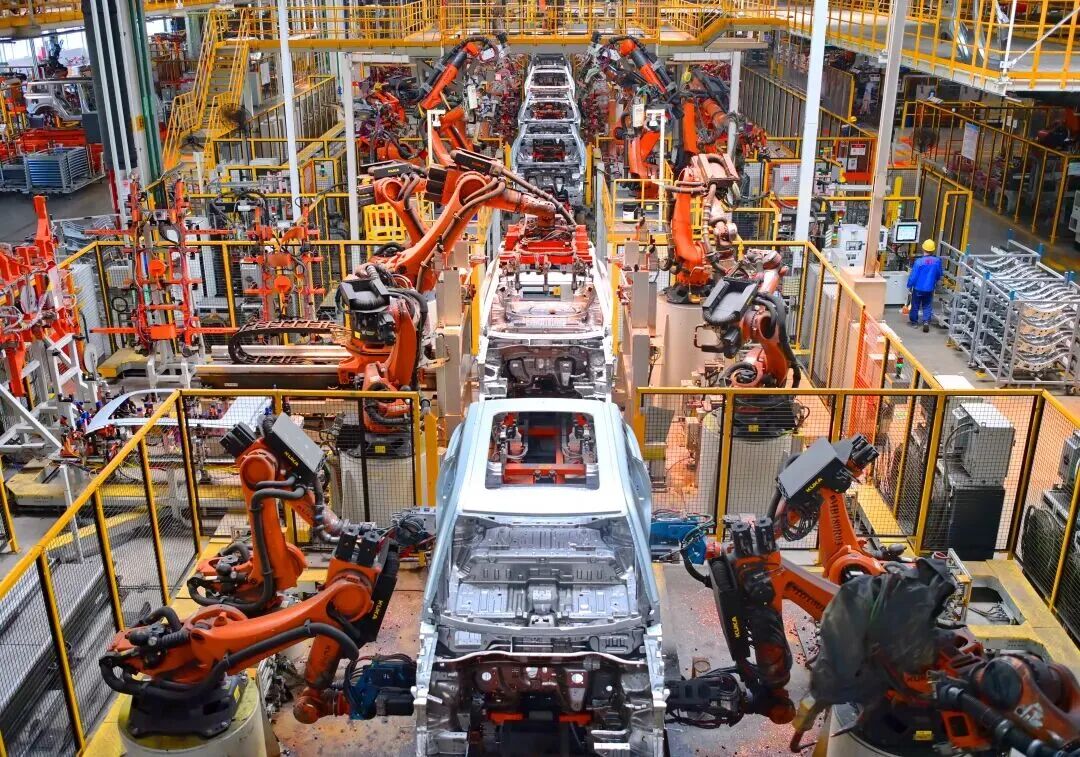 2025年6月16日,在江西省南昌市的一家汽车生产企业车间内,智能焊装机械臂有序运转。图/视觉中国