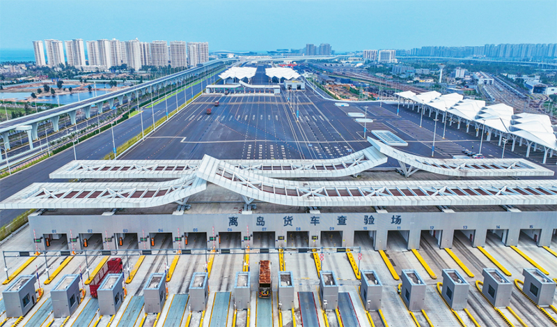 2025年12月18日,海南自由贸易港正式启动全岛封关。封关运作标志着海南自由贸易港由起步阶段到实质性运作、由政策试点到制度安排的全面转型。图为2025年11月18日,海口新海港和南港“二线口岸”(货运)集中查验场,由口岸、海关、交通、港口等参与的多场景合成演练正在进行。 人民图片 张茂/摄
