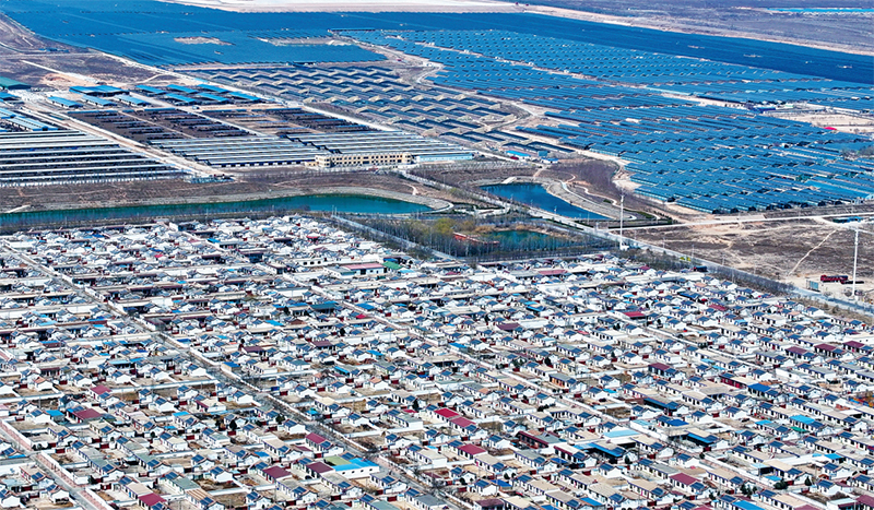 闽宁两地秉持生态优先发展理念,在“海鱼陆养”模式中将产业发展与生态治理深度融合,构建“盐碱地治理—绿色养殖—生态循环”的可持续发展体系。图为2025年3月21日,位于贺兰山东麓的宁夏银川市永宁县闽宁镇原隆村,整洁的民居和屋顶分布式光伏、集养殖和种植于一体的产业园区遥相呼应,展现出一派产业、生活、生态和谐交融的发展景象。 人民图片 袁宏彦/摄