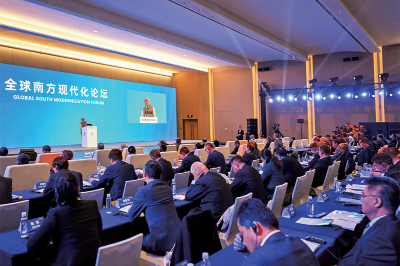 在动荡变革世界中,全球南方国家群体性崛起,成为维护世界和平、促进共同发展、完善全球治理的重要力量。中国作为全球南方的当然一员,正同其他全球南方国家一道,谱写人类发展的历史新篇。图为2025年11月21日拍摄的全球南方现代化论坛现场,论坛在北京举行,主题为“携手迈向现代化:共同愿景与发展之路”。 新华社记者 金良快/摄