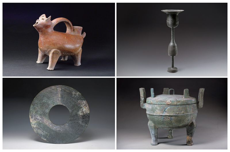 西拥泰山,东临沧海,海岱之间,是为齐鲁。以山东为中心的海岱地区是中华文明多元一体发展格局中的重要区域。左上图为大汶口文化的红陶兽形壶,距今约6000—4400年,是山东大汶口文化的独特代表;右上图为龙山文化的蛋壳黑陶高柄杯,距今约4400—3800年,有“黑如漆、明如镜、薄如纸、硬如瓷”的特点;左下图为战国时期(前475—前221年)鲁国大玉璧,是战国时期玉璧中形制最大的一件;右下图为战国时期齐国国子鼎,“国”氏为齐国望族,鼎内“国子”铭文表明“国”氏地位崇高。 山东省委宣传部供图