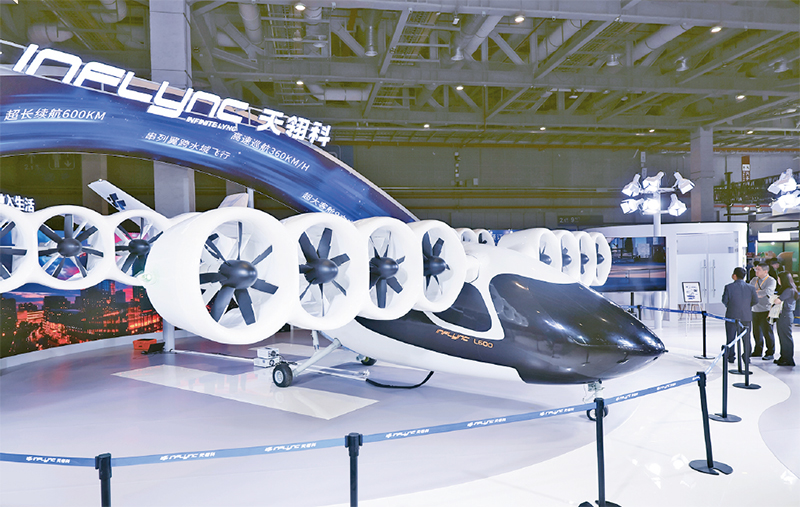 在第八届中国国际进口博览会上,一批新型移动出行产品与创新技术集中亮相,从智能驾驶到低空飞行,从新能源解决方案到人性化设计,一幅多元立体的未来出行图景正徐徐展开。图为2025年11月8日,在第八届进博会汽车及智慧出行展区拍摄的一款电动垂直起降飞行器。 新华社记者 王翔/摄